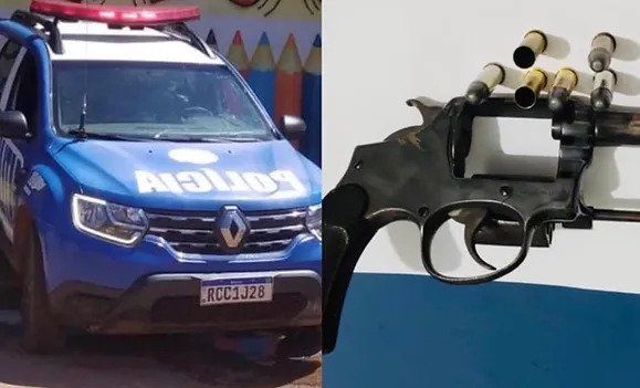 Os militares apreenderam com o suspeito um revólver calibre .38 com seis munições percutidas sendo duas deflagradas.