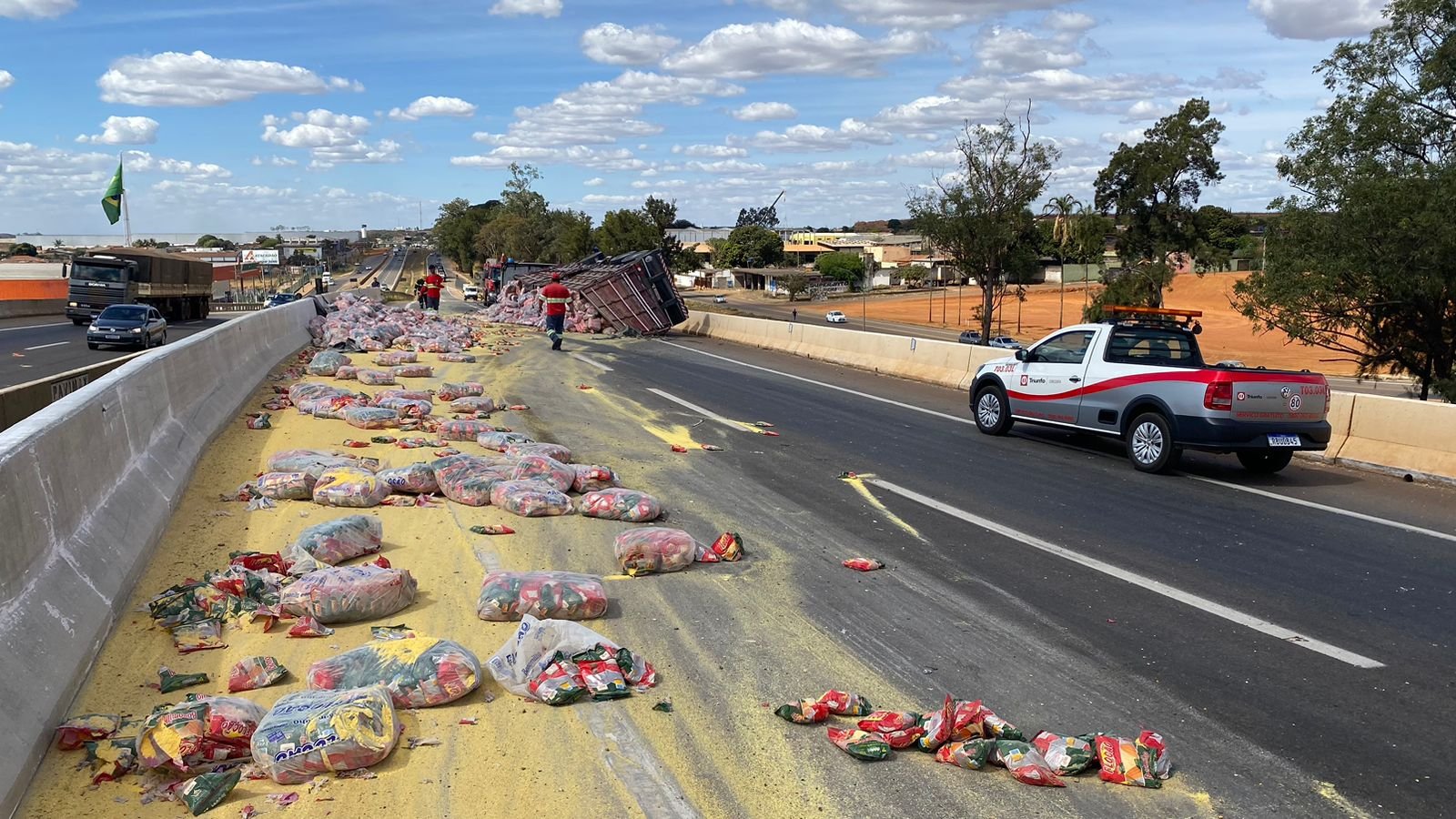 Na tarde desta sexta-feira (28) por volta de 14h40, o Corpo de Bombeiros Militar, em Anápolis, foi acionado para atender uma ocorrência de tombamento de