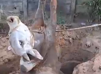 Para obter êxito na operação, se fez necessário o apoio de uma retroescavadeira da prefeitura, onde o trabalho em conjunto resultou na retirada o animal do buraco, sendo então, entregue ao seu proprietário.
