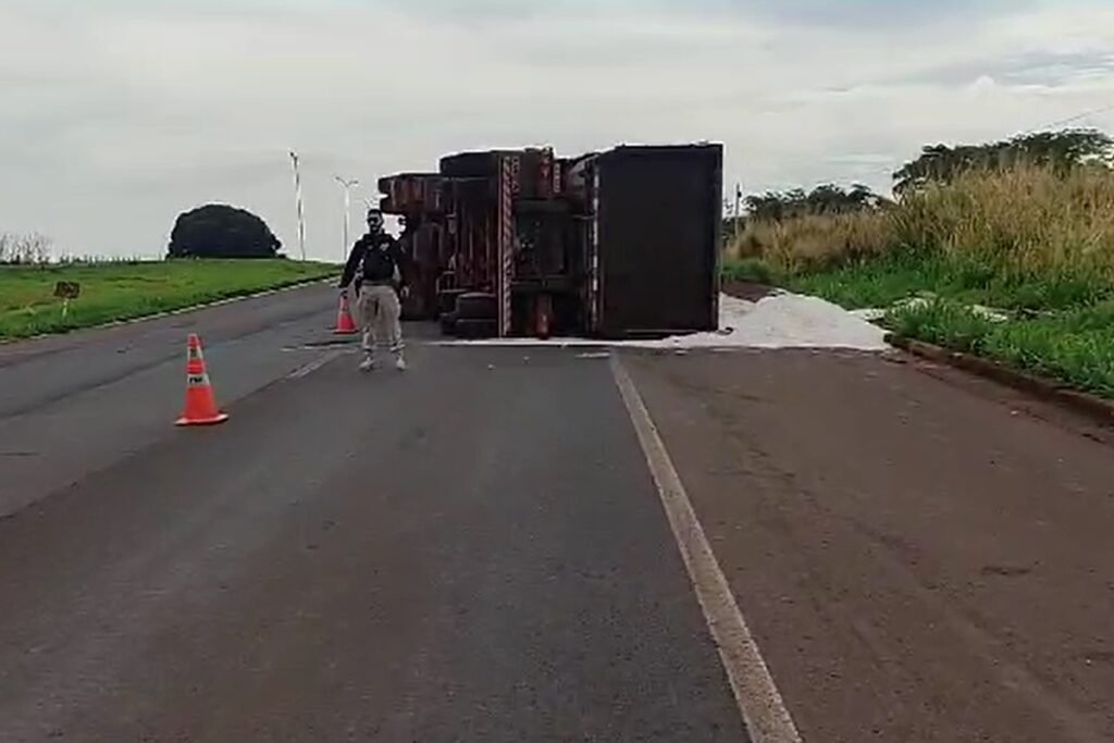 Conforme a Polícia Rodoviária Federal (PRF), a carreta seguia no sentido Santo Antônio da Barra/Rio Verde. O motorista teve ferimentos moderados.