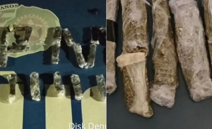 Entre as mercadorias, havia celulares, cigarros eletrônicos, caixas de som, rádio de comunicação e um total de 4 kg de pasta base de droga.