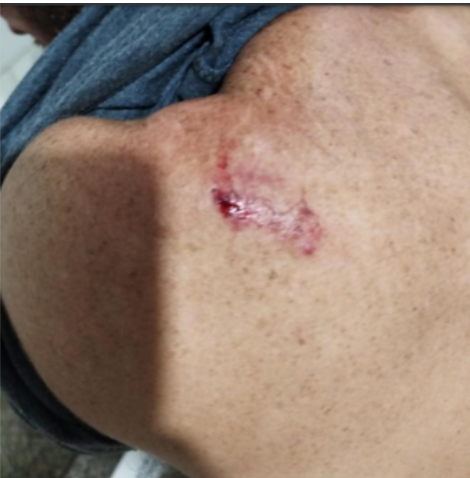 Apesar de ter conseguido se esquivar, a vítima foi atingida na região dorsal, especificamente no ombro esquerdo, ocasionando lesões.