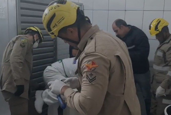 Os bombeiros encontraram a vítima consciente, porém com ferimentos graves no braço esquerdo. Após tentativas iniciais de desmontar a máquina, os bombeiros optaram por usar equipamentos de desencarceramento devido à quantidade significativa de sangue perdida pela vítima. Com técnicas de salvamento adequadas, cortaram a máquina para liberar o braço do funcionário.