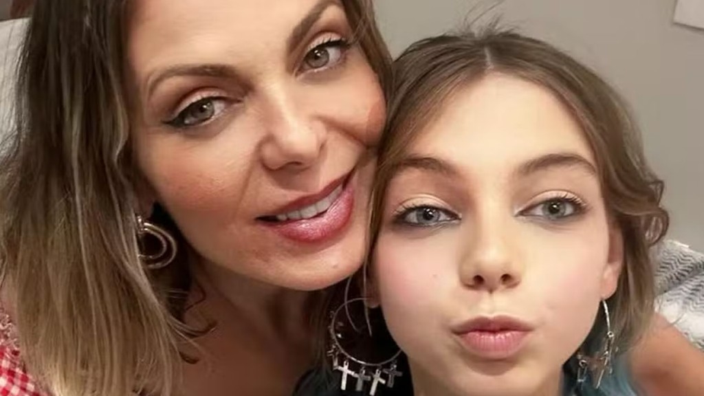 Sheila Mello, de 47 anos, ex dançarina do É o Tchan e a filha Brenda, de 12 anos, encerraram o domingo (21), com um passeio