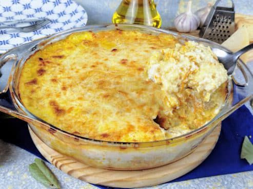 Ingredientes: – 500g de bacalhau demolhado – 2 cebolas picadas – 3 dentes de alho picados – 1 xíc. de azeite – 1 xíc. de