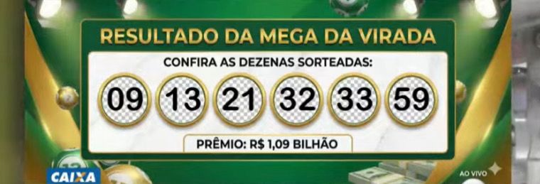 As dezenas reveladas no Espaço da Sorte, em São Paulo, foram 09, 13, 21, 32, 33 e 59