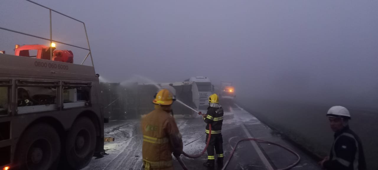 “Houve a necessidade da presença do Corpo de Bombeiros e da [concessionária] Triunfo-Concebra em função do derramamento da carga”. O inspetor informou que os motoristas não sofreram qualquer ferimento no acidente.