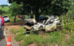 O veículo saiu da pista, bateu em uma árvore e ainda capotou. O Corpo de Bombeiros informou que dois homens ficaram presos às ferragens e não resistiram.