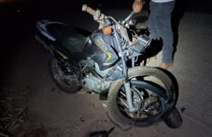 o acidente envolveu uma motocicleta Honda NXR 150 BROS ES e um caminhão Baú