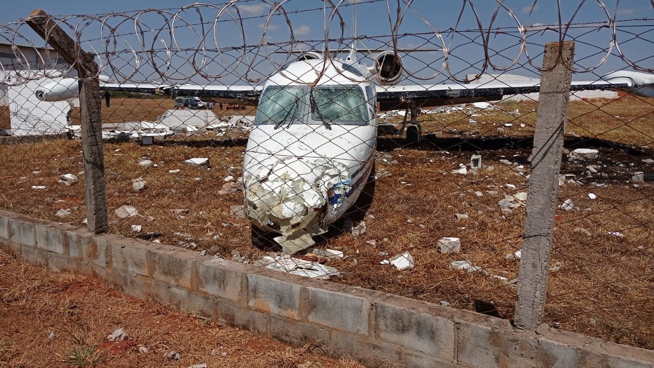 Vídeos que circulam pelas redes sociais mostram fumaça saindo da estrutura da aeronave, que sofreu várias avarias no bico, nos vidros e nas asas.