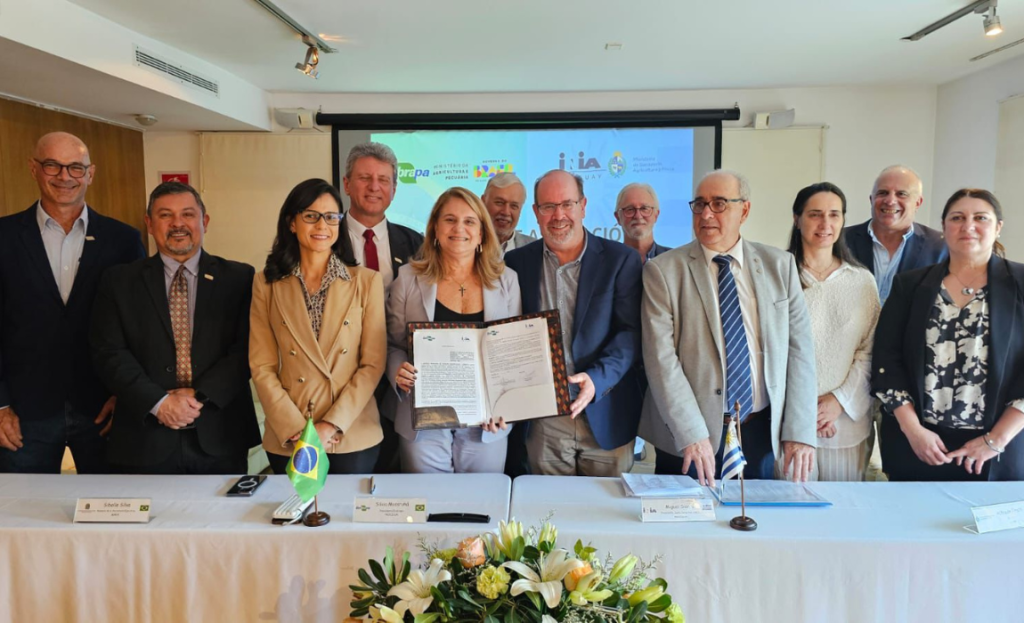 Com apoio institucional do Ministério da Agricultura e Pecuária (Mapa), a Empresa Brasileira de Pesquisa Agropecuária (Embrapa) e o Instituto Nacional de Investigação Agropecuária do Uruguai (INIA) assinam nesta quarta-feira (3), o acordo que cria a Unidade Mista de Pesquisa e Inovação (UMIPI-BR.UY), avançando em uma nova etapa da cooperação agrícola bilateral. A formalização ocorreu em Punta del Este durante a reunião do Programa Cooperativo para el Desarrollo Tecnológico Agroalimentario y Agroindustrial del Cono Sur (Procisur).