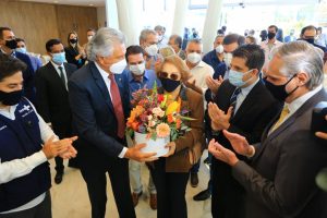 “Eu gostaria que todo cidadão goiano pudesse ter a oportunidade de caminhar aqui em todos os andares do Hemocentro de Goiás. É o melhor do País, com o nome do professor Nion Albernaz”, afirmou Caiado.