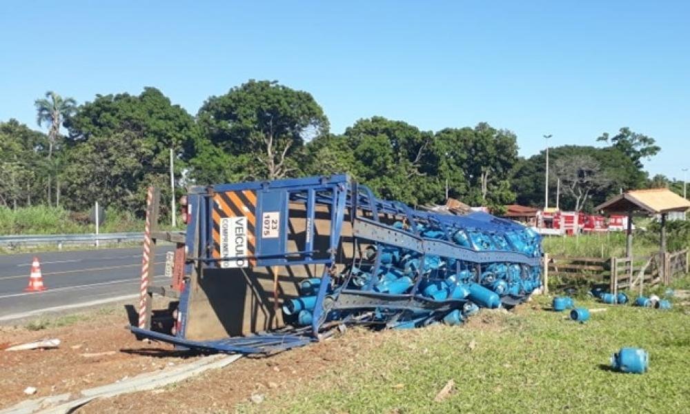 Um caminhão carregado com botijões de gás GLB tombou na manhã de hoje (30), na rodovia GO-070, próximo ao povoado de Areias, na Cidade de Goiás. O Corpo de Bombeiros foi acionado para isolar a área, que oferecia riscos às pessoas que passavam pelo local.