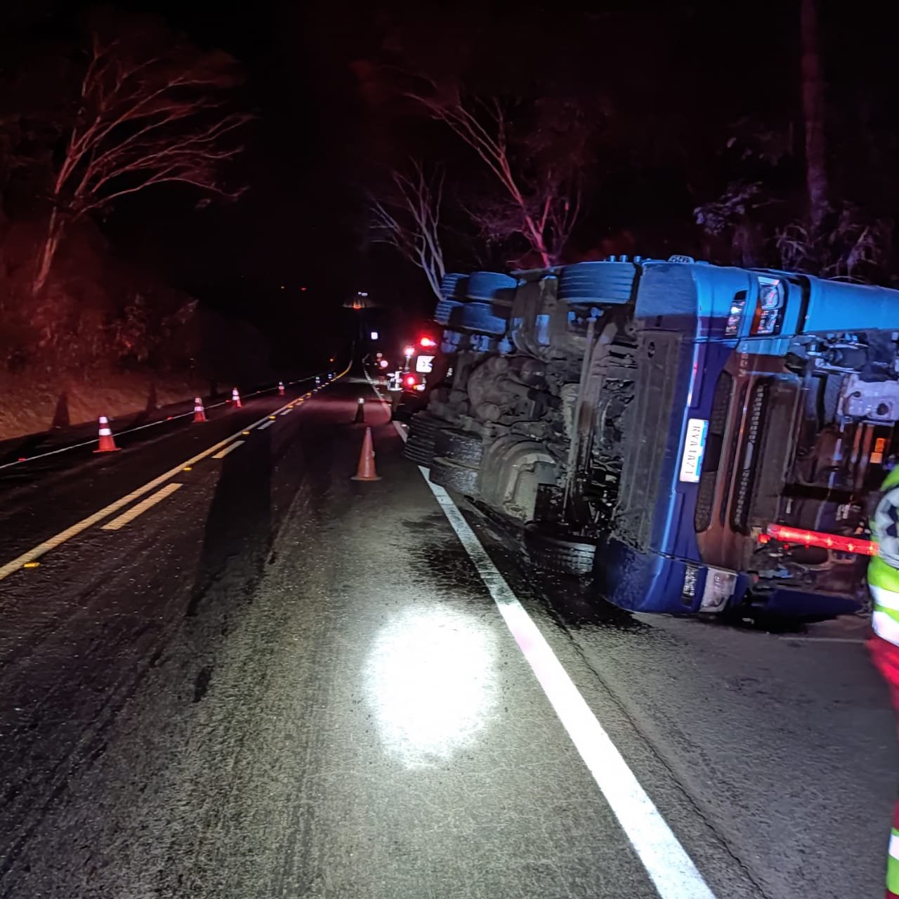 Caminhão carregado de maçãs tomba na BR-153 e mata motorista em Jaraguá