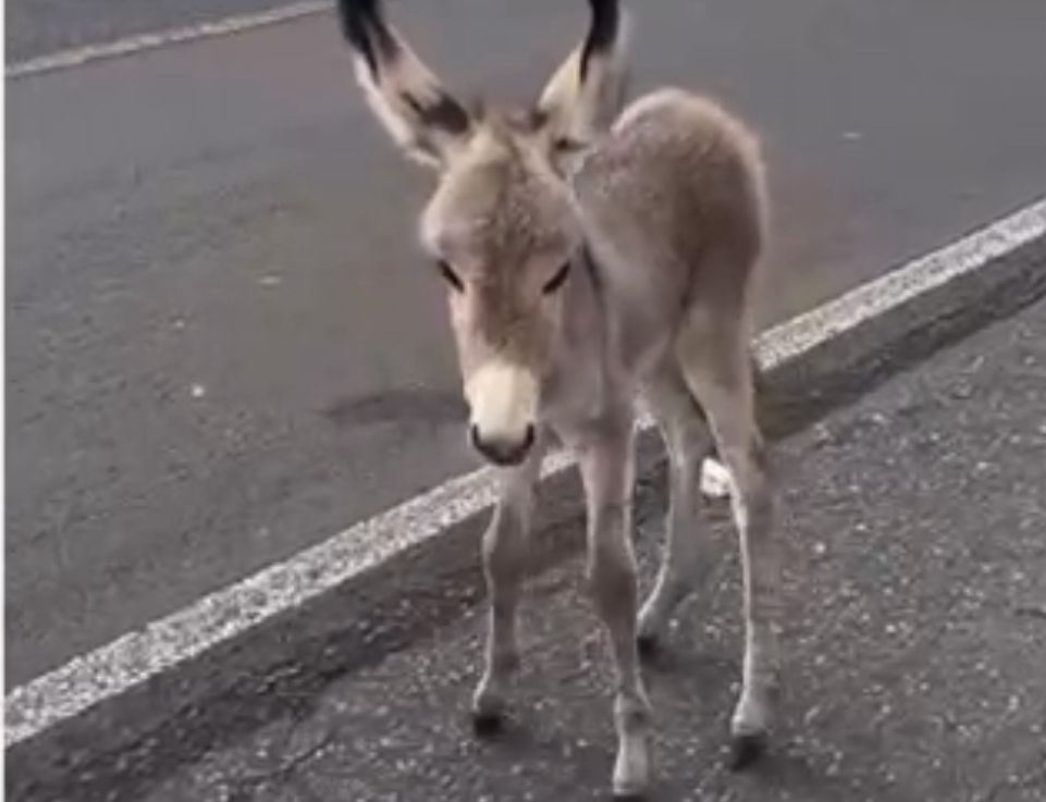 Cena emocionante: Filhote de jumento não deixa a mãe atropelada e é resgatado por motorista