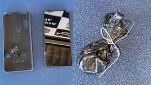 Face ao estado de exaltação do suspeito, que continuava a resistir e a oferecer perigo, foi preciso usar uma corda para conter seus movimentos, uma vez que ele continuava a atacar os militares com pontapés incessantes. No momento da revista, foi encontrada na capa do celular do suspeito uma substância embalada em invólucro preto, aparentando ser cocaína.