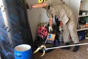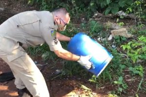 Com o uso de material de captura de serpentes, os militares capturaram o animal e posteriormente o soltou em seu habitat natural.