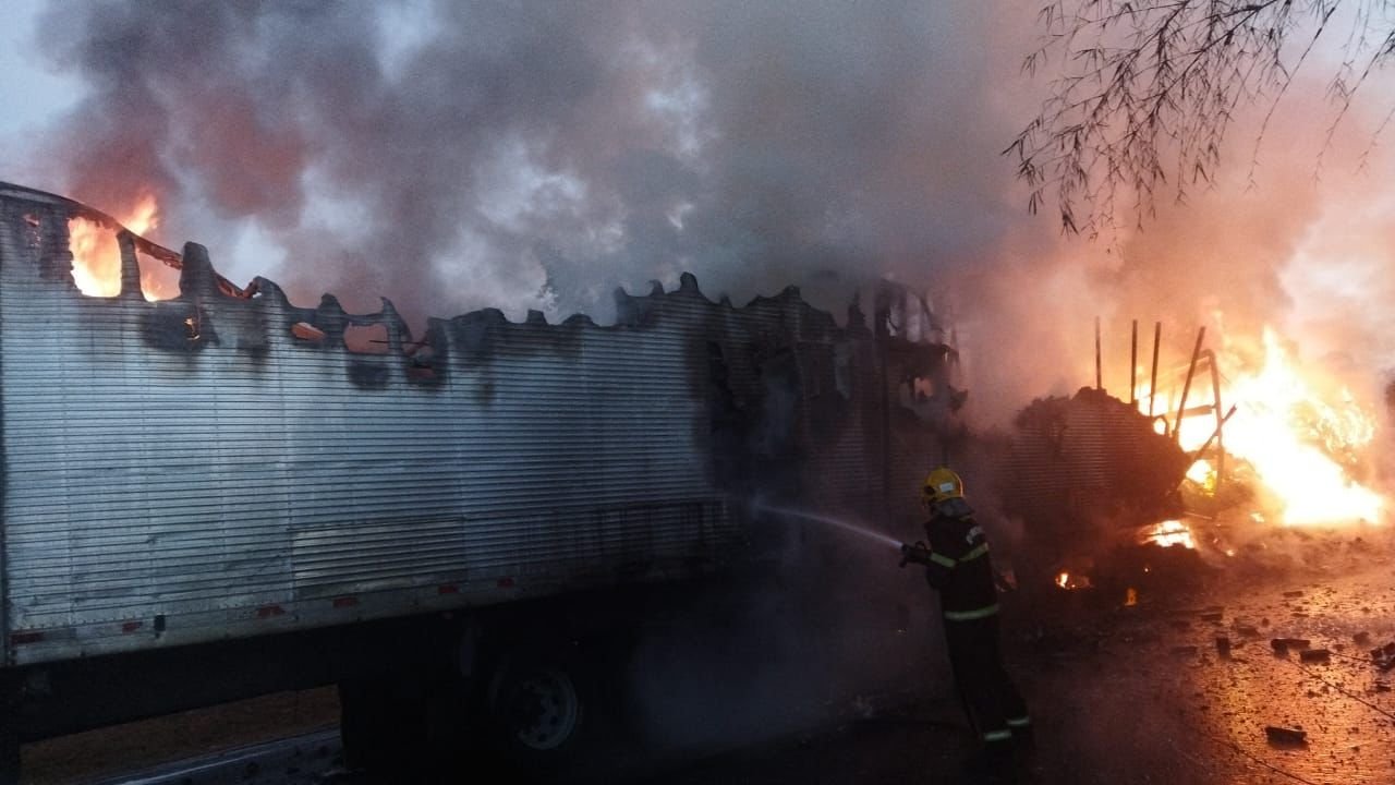 O Corpo de Bombeiros em Itumbiara recebeu por volta de 05h30 da manhã de hoje (9), um chamado para combater um incêndio em duas carretas de um rodotrem a 2 km após o posto Alvorada, sentido Itumbiara – Goiânia, na rodovia BR-153.