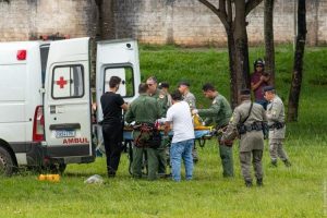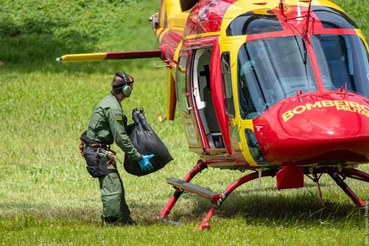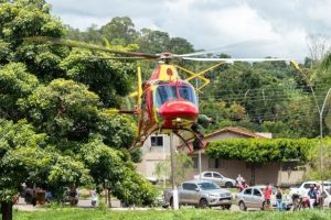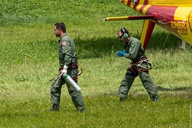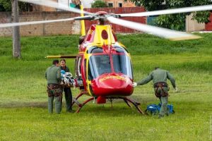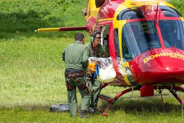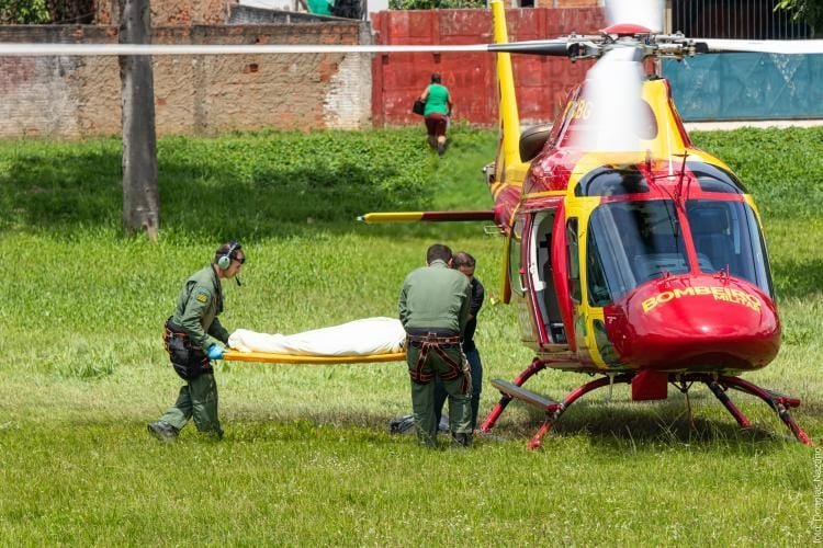 Após transporte da primeira vítima, o helicóptero retornou para atendimento segunda vítima, uma criança de 11 anos, com amputação traumática do membro inferior esquerdo.