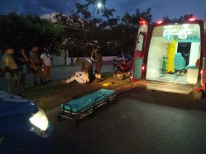 A corporação ao chegar no local se deparou com a vítima do sexo masculino com idade aproximada de 21 anos, apresentando escoriação na face, contusão na perna esquerda e apresentava estar confuso.