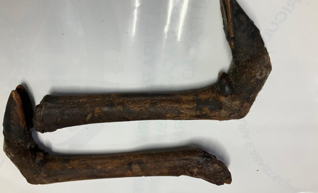 O serviço de Vigilância Agropecuária Internacional (Vigiagro) do Aeroporto Internacional de Guarulhos, em São Paulo, interceptou na última quinta-feira (5) três patas com cascos fendidos – possivelmente de caprinos – em bagagem de passageiro vindo de um voo da África. A mala estava desacompanhada.