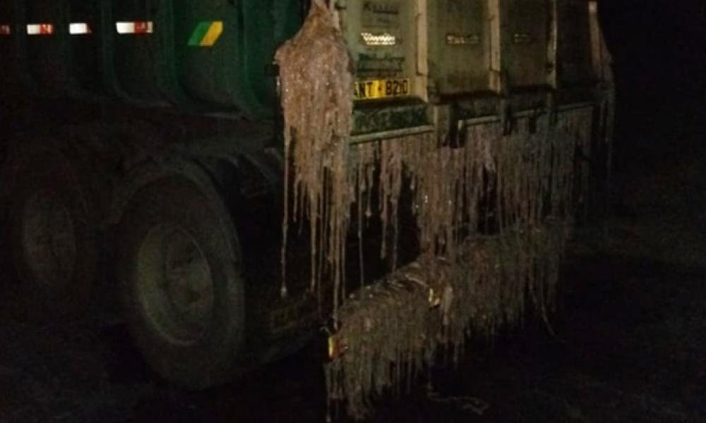 A rodovia BR-153 entre Professor Jamil e Hidrolândia, no interior de Goiás, está interditada nesta sexta-feira (29). Conforme a Polícia Rodoviária Federal (PRF), um caminhão que transportava dejetos de frango derramou parte da carga por cerca de seis quilômetros, deixando o local intransitável.