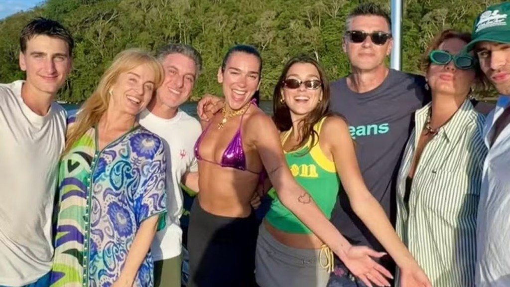 Luciano Huck e Angélica abriram as portas da mansão, em Angra dos Reis (RJ), para receber Dua Lipa, sua família e amigos. O apresentador do Domingão compartilhou o registro especial ao lado da cantora e declarou toda sua felicidade.
