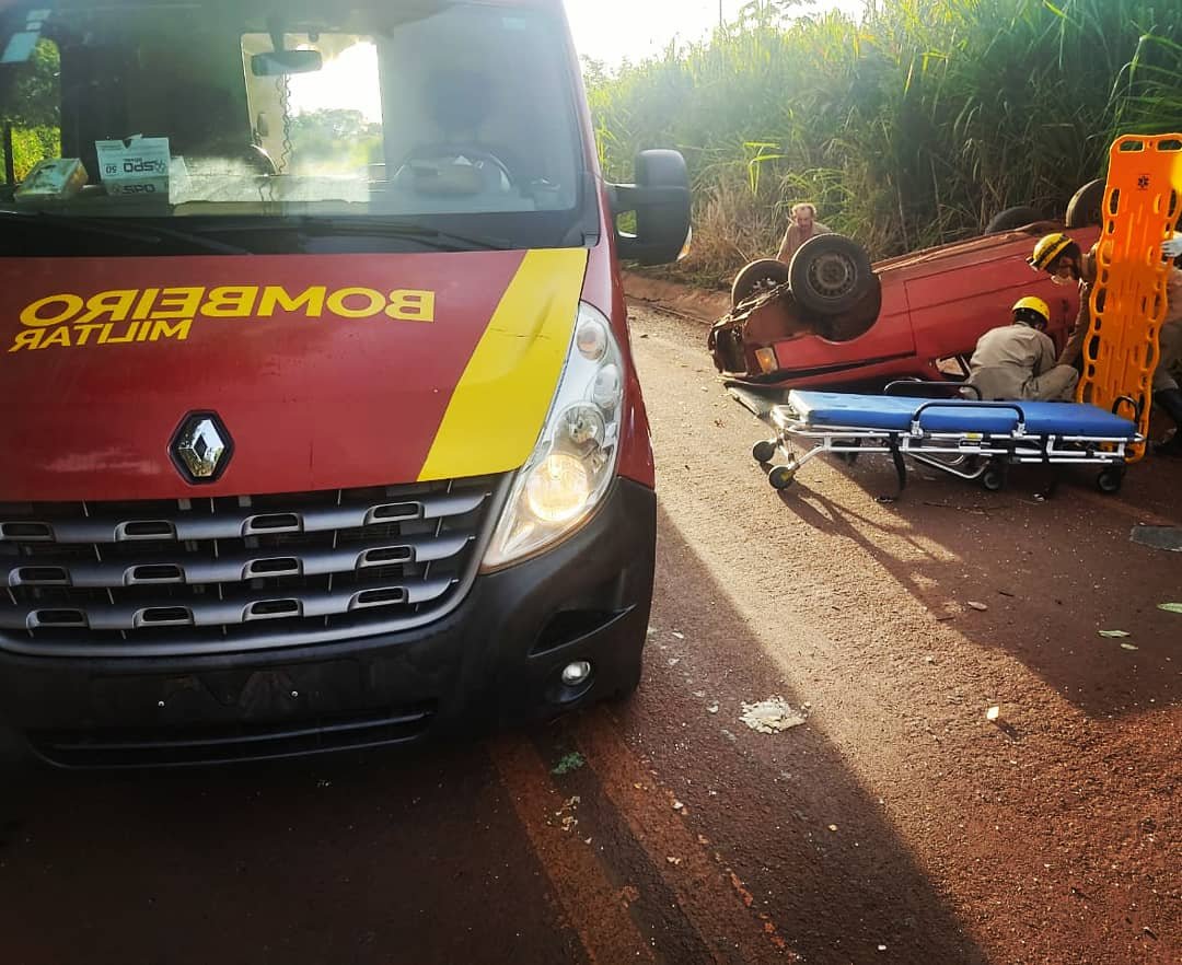 Uma viatura de combate a incêndio permaneceu no local devido ao risco de incêndio no veículo que capotou, uma vez que estava com pequeno vazamento de combustível.