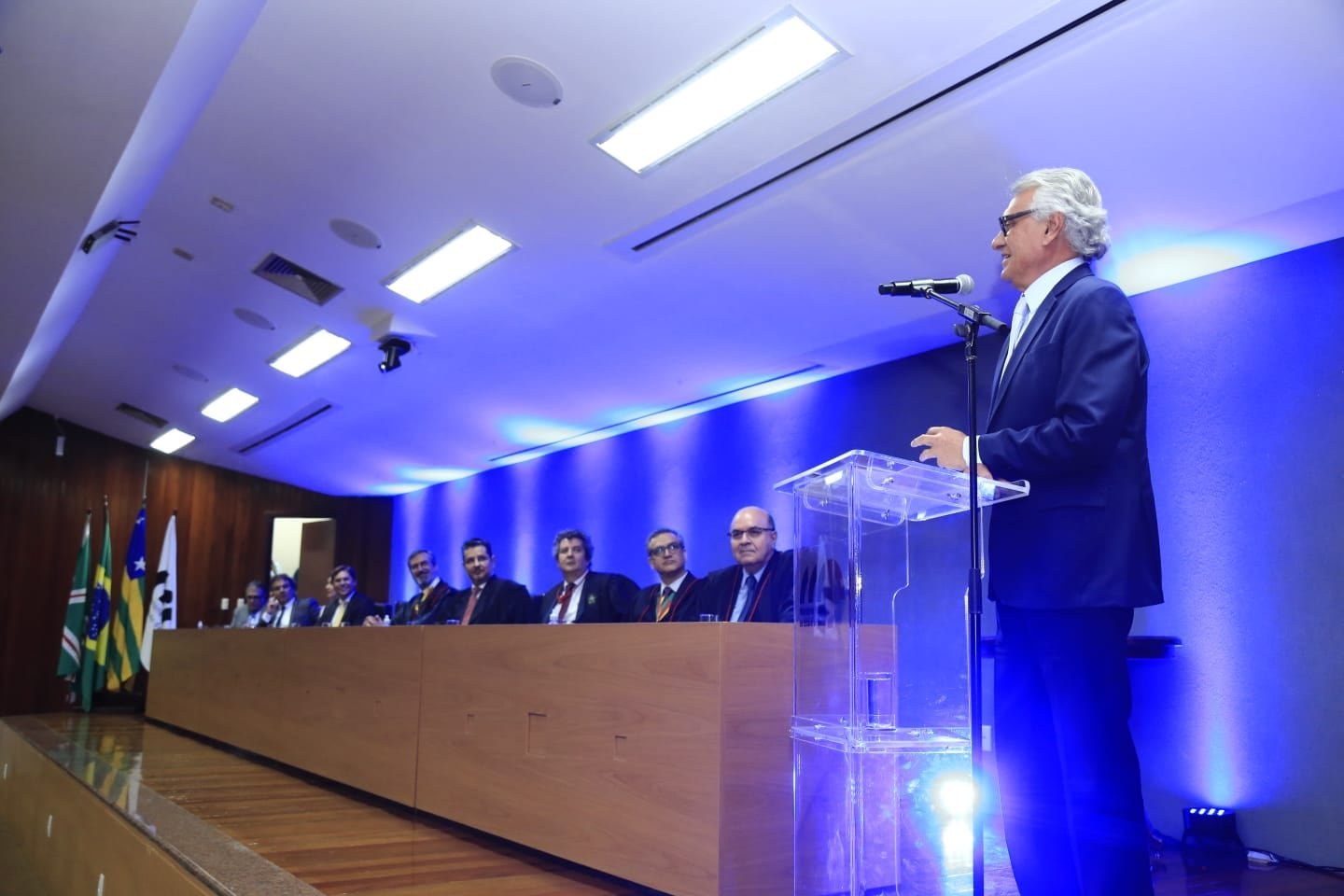 O governador Ronaldo Caiado participou na noite desta terça-feira (18), em Goiânia, da solenidade de posse de sete novos procuradores de Justiça do Ministério Público de Goiás. Os nomes foram definidos pelo Conselho Superior do órgão (CSMP-GO) durante reunião extraordinária realizada em setembro. Alguns dos critérios considerados para a promoção são antiguidade e merecimento.