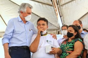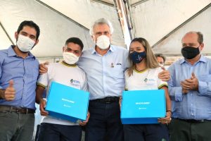 Durante a entrega dos computadores, Caiado fez a doação, ao aluno Tayrone Rodrigues Bueno, de um óculos inteligente, capaz de ajudar crianças com problemas visuais a ler.  Emocionado, o governador lembrou que a tecnologia israelense já beneficiou outros jovens goianos.