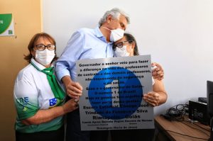 Durante a visita à nova sede da Coordenação Regional de Educação de Ceres, Caiado foi recebido por professores e presenteado com chapéu e caneta. Ao receber os presentes, agradeceu o empenho dos servidores e lembrou os investimentos feitos para melhorar a educação do Estado. “Com novos laboratórios, uniformes, materiais escolares, computadores, escolas reformadas e o empenho dos nossos educadores estamos fazendo algo inédito no Brasil. As pessoas estão voltando para as escolas públicas e acreditando na educação que oferecemos”, afirmou.