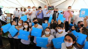 Na ocasião, o governador entregou 390 Chromebooks a estudantes da 3ª série do Ensino Médio, para auxiliar os alunos nos estudos. Serão distribuídos 60 mil computadores em todo Estado. O investimento total é de R$ 144 milhões, por meio da Secretaria de Estado da Educação (Seduc). Além disso, assinou Ordem de Serviço no valor de R$ 500 mil para a reforma e ampliação do Colégio Estadual Virgílio do Vale.