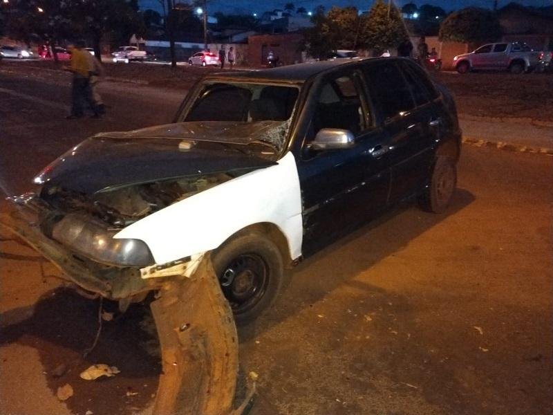 Em Ceres, veículo atinge poste na Avenida Bernardo Sayão