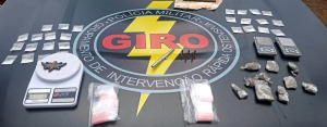 Os policiais conseguiram detê-lo e encontraram mais maconha na bermuda, além da pochete contendo a arma de fabricação artesanal tipo caneta. Na mesma bolsa, havia ainda 27 porções de cocaína, dez porções de maconha, três balanças de precisão, cinco munições intactas de calibre .22, um celular e R$ 350,00 em espécie.