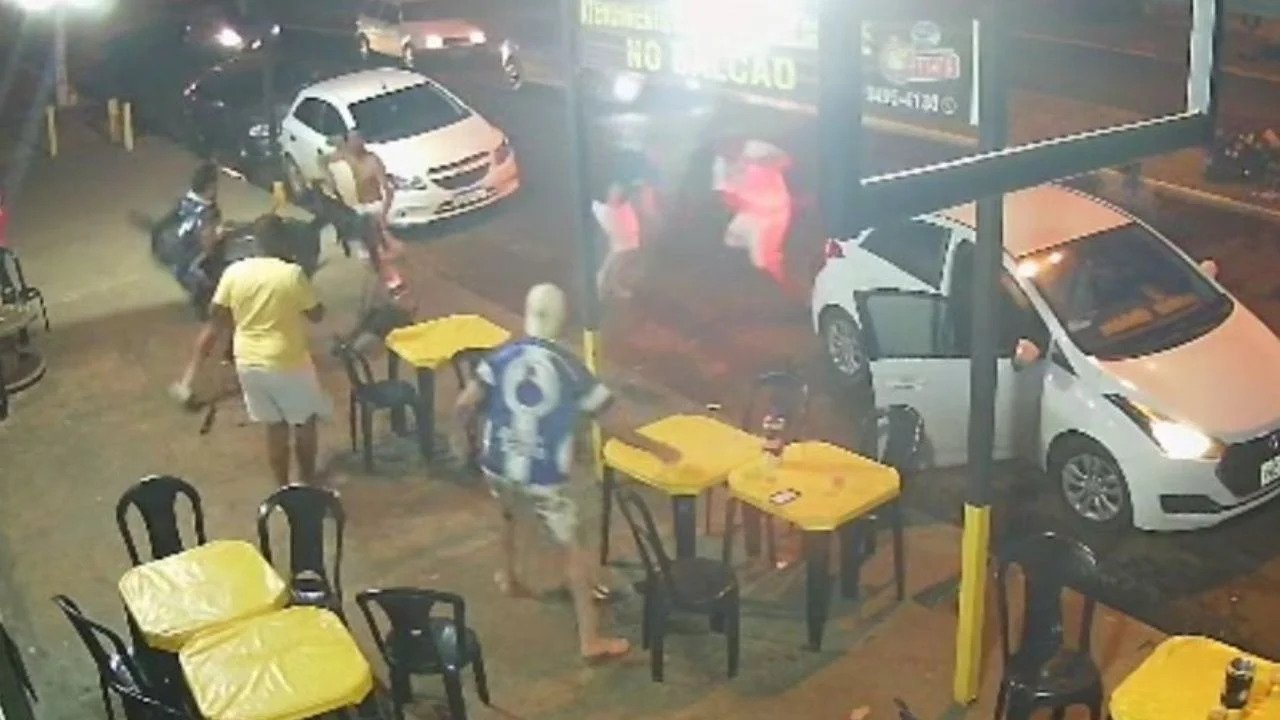 Em Goiás, torcedores estacionam carro em bar e se envolvem em briga generalizada com pauladas, chutes, socos e cadeiradas