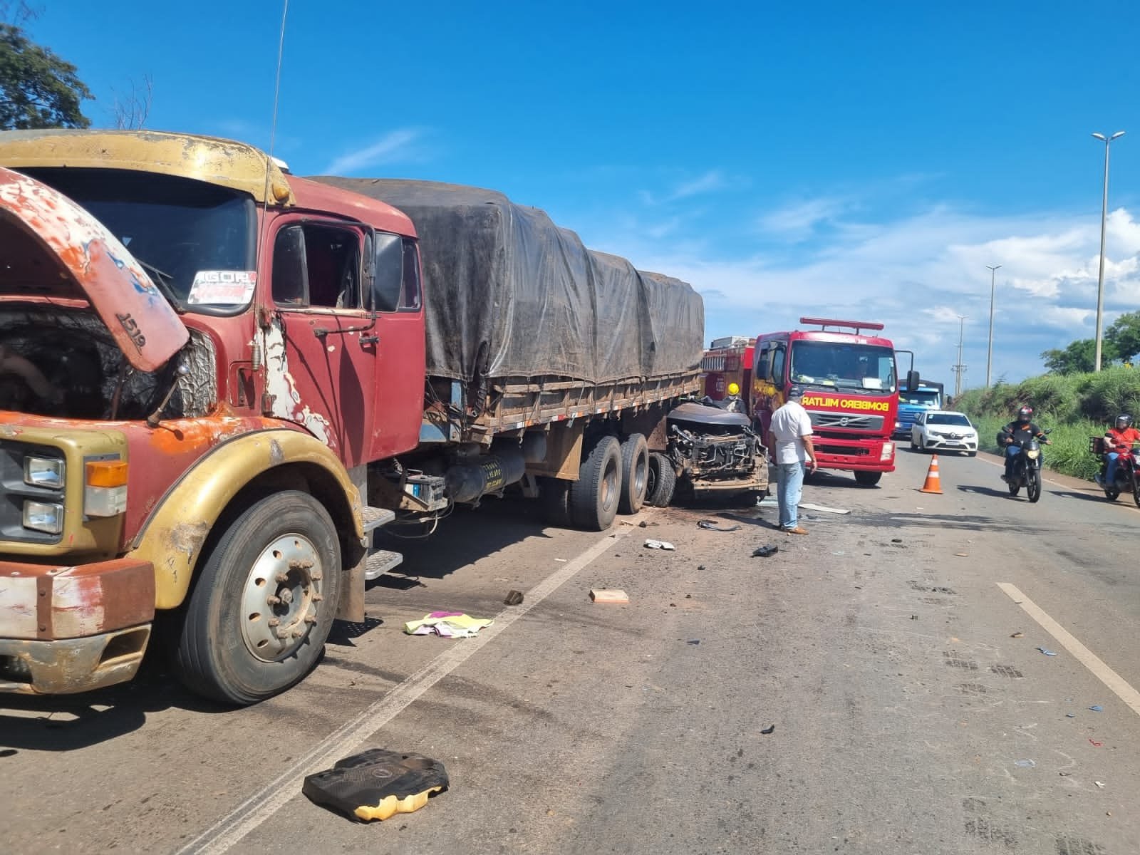 Conforme o Batalhão Rodoviário da Polícia Militar, o caminhão estava parado no encostamento, quando foi atingido na traseira pelo outro veículo. Ainda não se sabe o que provocou o acidente.