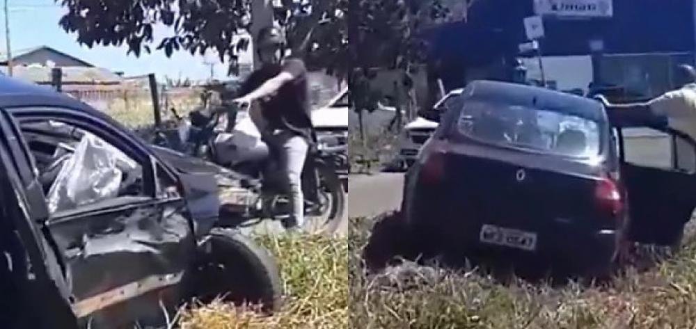 Neste domingo (26), um grave acidente de trânsito na região noroeste de Jaraguá, envolvendo uma moto e um Renault Megane, no cruzamento das Av. Antônio Rios com a Bernardo Sayão, próximo à um laticínio. Conforme as informações no local, o motociclista, um entregador de gás, ficou muito ferido e foi transportado para o Hospital Estadual de Jaraguá (HEJA), o condutor sofreu múltiplas fraturas e teve que ser encaminhado para o Hospital de Urgência de Anápolis em estado grave.