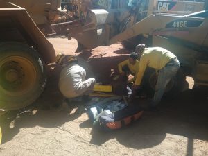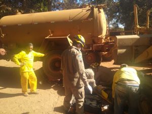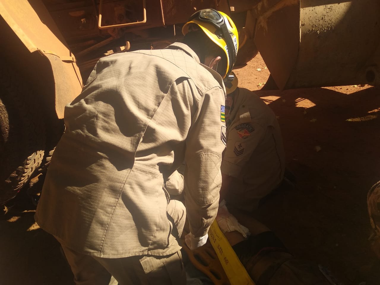 Ao chegar no local nossas equipes encontram o piloto da moto embaixo do caminhão, o homem estava consciente mas apresentava ferimentos graves na coxa direita e sinais de contusão no tornozelo esquerdo. A guarnição de salvamento contou com o apoio de uma pá carregadeira da empresa que está realizando obras no asfalto da GO-239 para retirar a vítima debaixo do veículo.