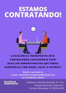 Empresa do ramo de transporte em Rialma no Vale do São Patrício, contrata auxiliar administrativo.