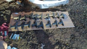 As pistolas e os carregadores estavam escondidos no para-choque de um dos automóveis. Para os policiais, o motorista disse que “não sabia das armas” e que tinha pegado o carro no Mato Grosso do Sul (MS) com destino a Goiânia (GO).