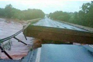 A ponte sobre o Rio Santa Teresa na rodovia GO-241, entre os municípios de Santa Teresa e Formoso de Goiás, no norte do estado, foi bloqueada preventivamente neste sábado (25) após a forte chuva que atingiu a região nos últimos dias.
