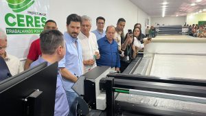 Em continuidade às políticas públicas de promoção do desenvolvimento econômico e social regional, o governador Ronaldo Caiado realizou, nesta terça-feira (11), a entrega de mais uma máquina de corte de tecido automática para atender o setor de confecções, em Ceres no Vale do São Patrício. O maquinário, avaliado atualmente em R$ 2,5 milhões, é considerado o mais moderno do mercado e deve expandir a cadeia produtiva de vestuário na região Centro-Norte do estado.