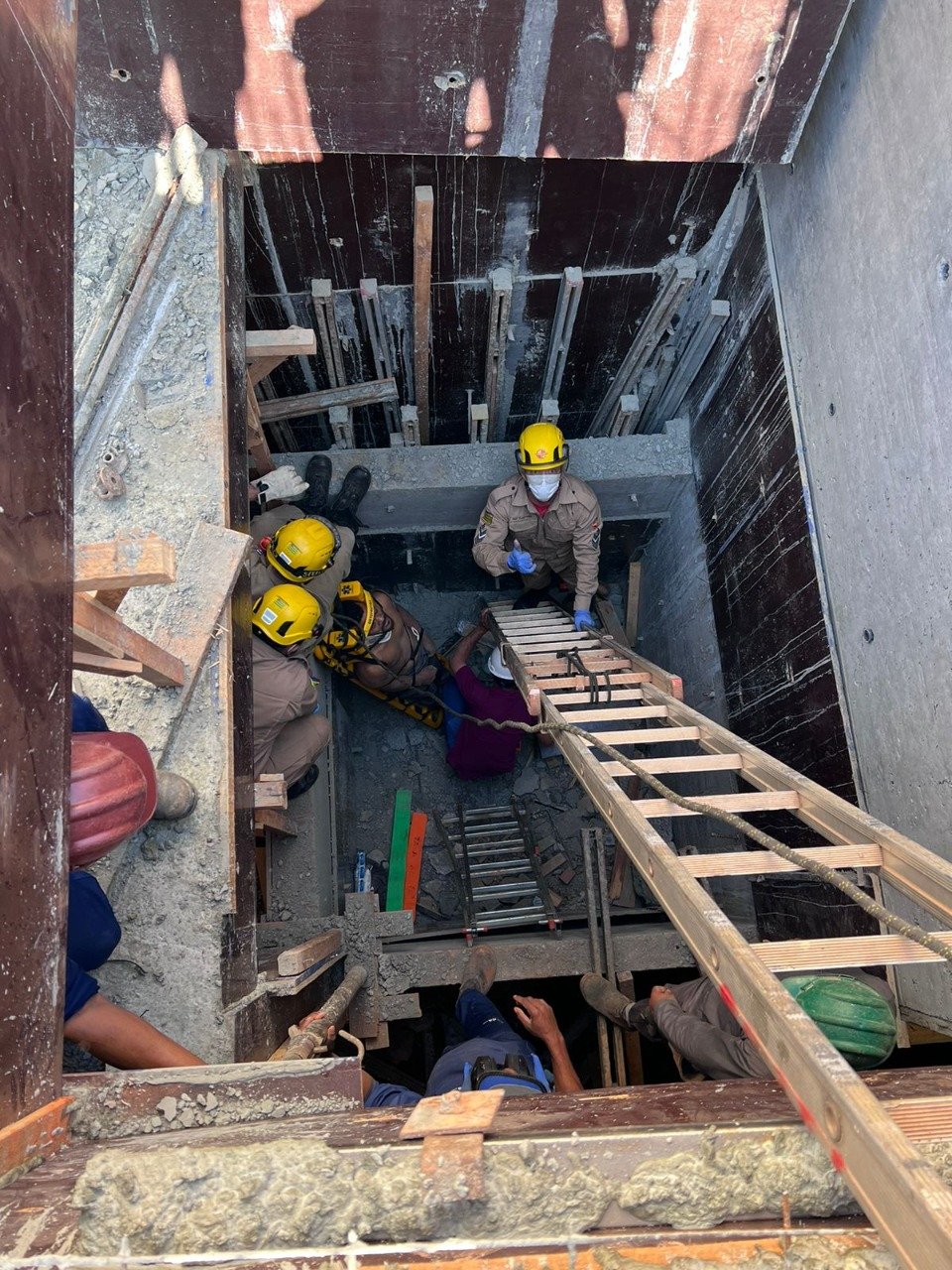 Bombeiros Militar foram acionados na manhã desta sexta-feira (2) para resgatar um trabalhador que caiu no fosso do elevador de uma obra, no Parque Amazônia em Goiânia.