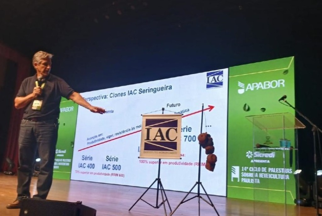 O Instituto Agronômico (IAC) está conduzindo um estudo sobre novos clones de seringueira em colaboração com a Michelin/Cirad e a Associação Paulista de Produtores e Beneficiadores de Borracha (APABOR). A iniciativa foi tema da palestra “Novos Clones IAC (Parceria IAC + Michelin/Cirad + APABOR)”, apresentada pelo pesquisador Erivaldo José Scaloppi Junior durante o 14º Ciclo de Palestras sobre a Heveicultura Paulista. O evento, reconhecido como o principal encontro técnico-científico sobre seringueira no Brasil, ocorreu nos dias 21 e 22 de novembro, em São José do Rio Preto (SP).