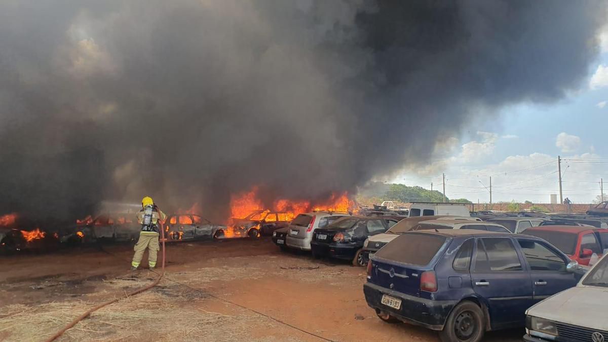 Incêndio atinge pátio do Detran e consome cerca de 200 veículos em Uberaba