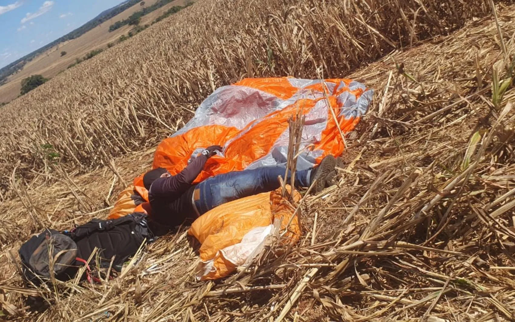 O Corpo de Bombeiros realizava a segurança do evento e informou que o piloto teve um problema com o equipamento durante o voo. Com isso, precisou acionar o paraquedas reserva para fazer um pouso de emergência. O subcomandante Higor Mendonça explicou que, como o vento estava muito forte, Evanderson só conseguiu pousar em uma região de vegetação distante da planejada.