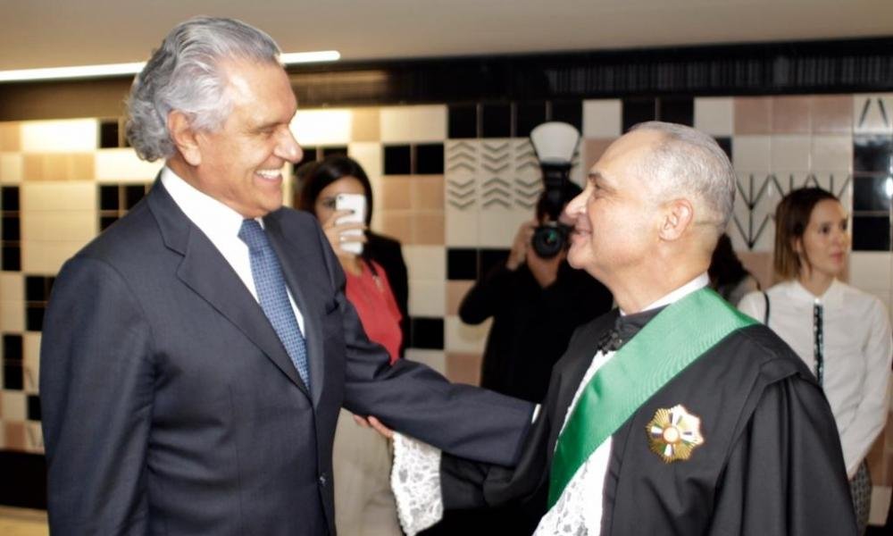 Governador Ronaldo Caiado cumprimentando o desembargador Paulo Pimenta