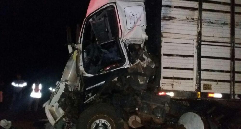 Os dois veículos estavam em movimento. O motorista que colidiu na traseira do outro caminhão estava sozinho e a PRF não encontrou marcas de frenagem no local.