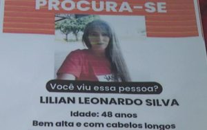Uma mulher identificada como Lilian Leonardo Silva de 48 anos, desapareceu após sair de casa, no Setor Caravelas em Goiânia. De acordo com Gabriel Leonardo de 18 anos, que é filho da mulher ela desapareceu no dia 26 de fevereiro. A família está espalhando cartazes pela cidade em busca de qualquer informação sobre o paradeiro de Lilian.