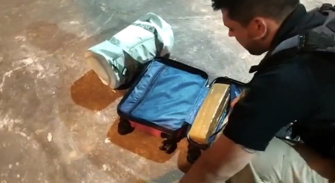 Nas bagagens pertencentes à passageira, a equipe PRF encontrou 20 quilos de maconha em dentro de duas malas. Cerca de três horas após a abordagem, os policiais localizaram uma mulher com as características da passageira que havia fugido, andando pelo acostamento da rodovia e conseguiram identificá-la, comprovando também pelo ticket de viagem que a droga estava em posse dela.